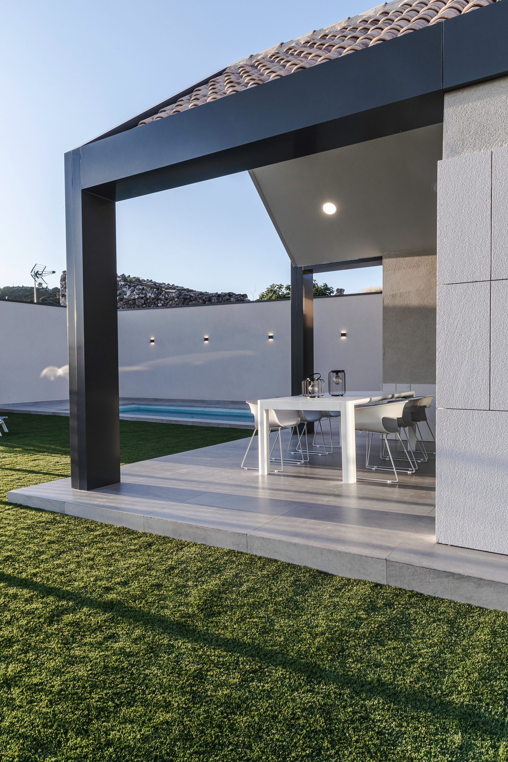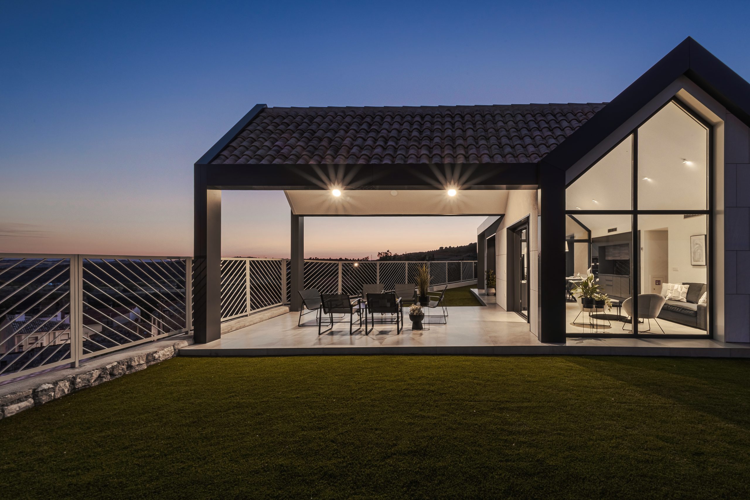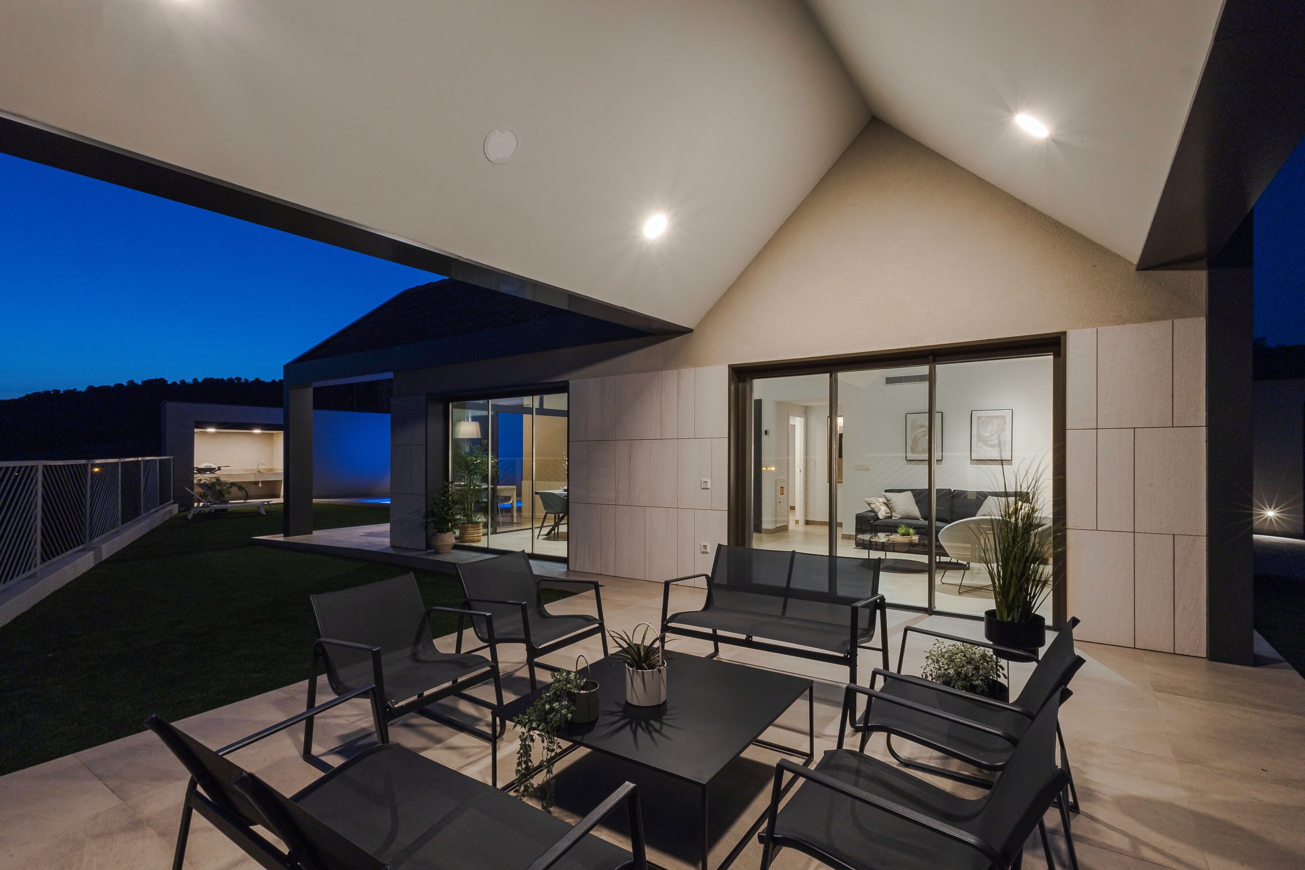 Zonas verdes cuidadosamente diseñadas rodean la villa, con espacios pensados para distintos momentos del día. Destaca una zona de barbacoa con aseo exterior y un jardín orientado hacia las vistas panorámicas.