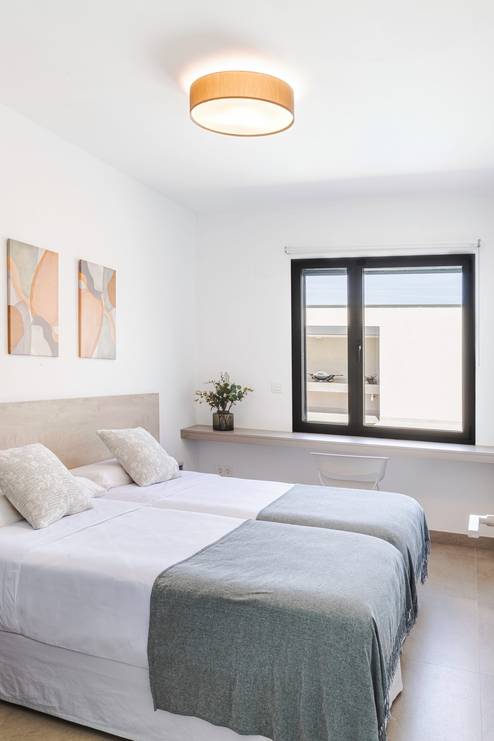 Una estancia acogedora con dos camas individuales, ideal para descansar y disfrutar de la serenidad del entorno. Equipada con un práctico escritorio, perfecta para quienes quieran combinar descanso y trabajo. Vistas directas a la piscina y al jardín, que aportan luz y conexión con el exterior.