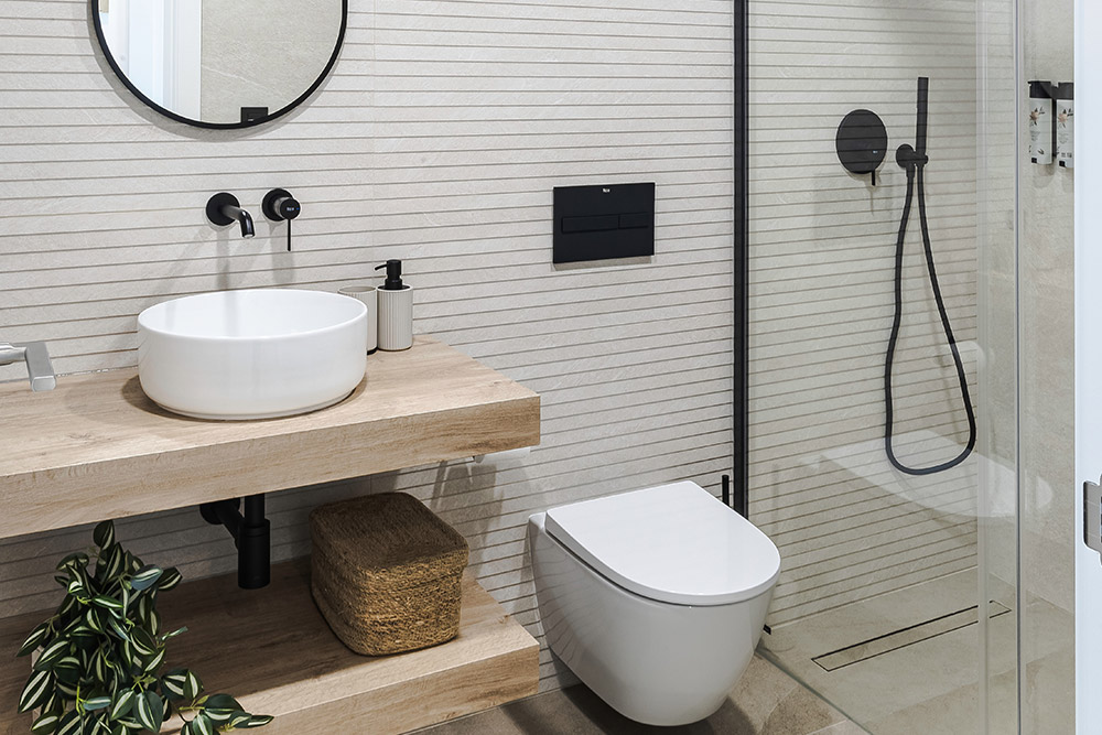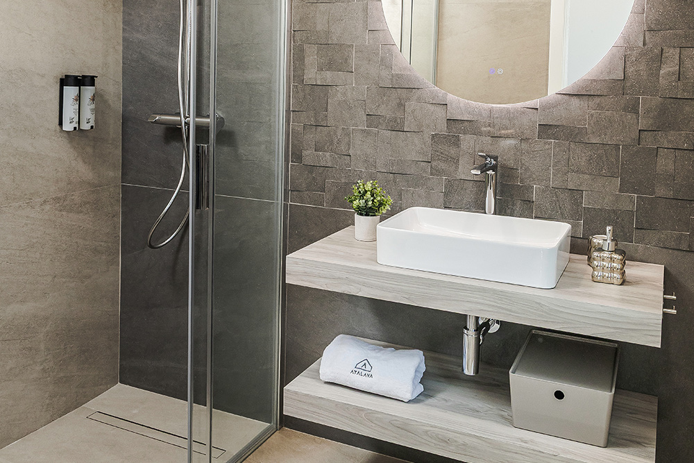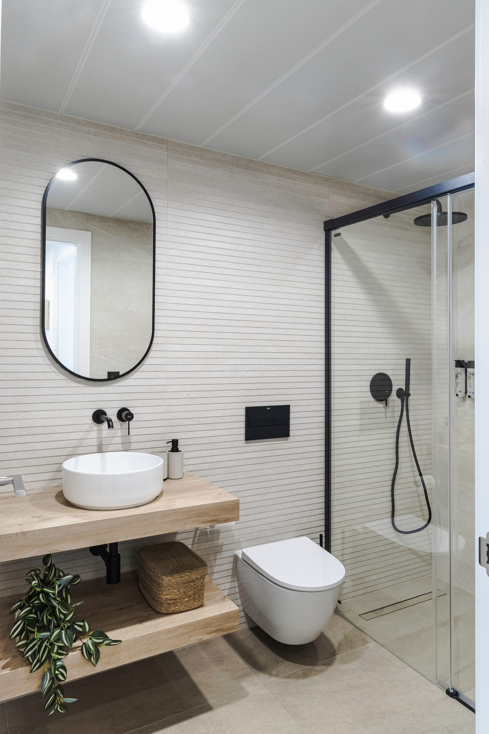 La habitación principal cuenta con baño privado de exquisito diseño con ducha accesible.